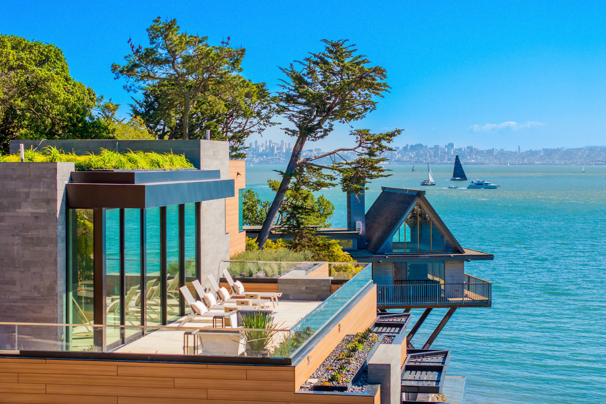 A Rare Brand New Waterfront Masterpiece Where Luxury Meets Unobstructed Views of The Golden Gate Bridge, San Francisco, Sausalito and Mt. Tam. Perched dramatically over the edge of the prestigious west side of Belvedere, 46 Cliff is a true architectural triumph. Every room embraces stunning, panoramic views from corner glass walls to expansive wall-to-wall tall glass doors opening onto the sprawling terraces for indoor-outdoor living, this Coastal Sanctuary offers Unmatched Views and Serenity. Step into this Paradise and Experience the Very Best of Waterfront Living.